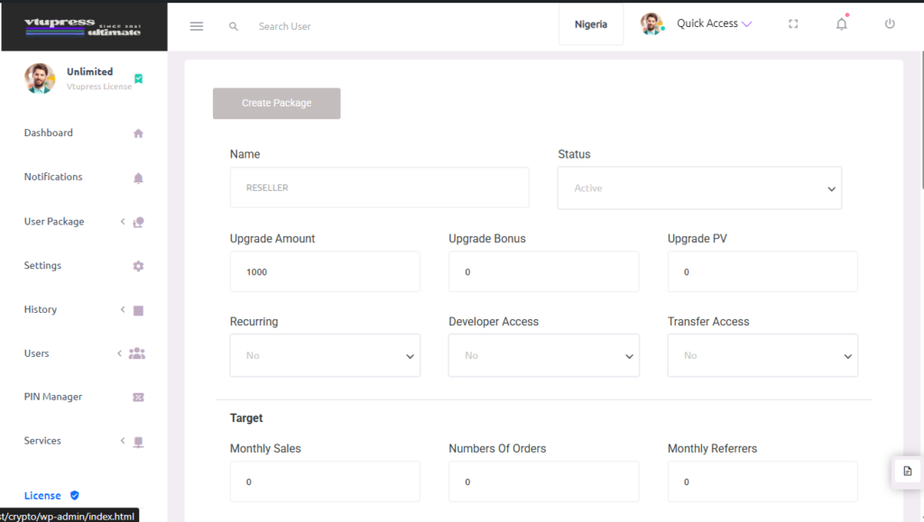 Note: All target here must be met to retain access to the package else it fallbacks of auto deduction of users balance (Upgrade Amount) at the end of the month to use that package